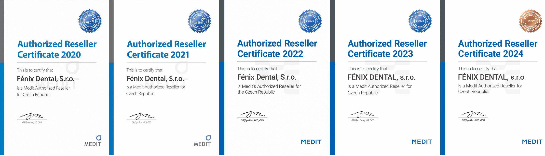 Intuitivní super rychlý software je v českém jazyce a nabízí mnoho nadstandardních funkcí a aplikací jako jsou ORTHO SIMULACE, SMILE DESIGN, CROWN FIT a další. Uživatelé neplatí za používání software žádné poplatky a veškeré nové a pravidelné aktualizace a rozšiřování skenovacího software jsou poskytovány majitelům skenerů Medit zdarma. V České republice získávají uživatelé navíc od společnosti Fénix dental, která je jediným zástupcem Medit corp. pro Českou republiku, mnohaletý bezplatný uživatelský a poradenský servis.