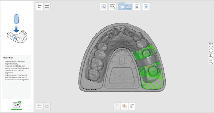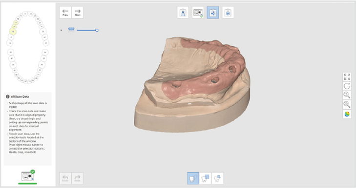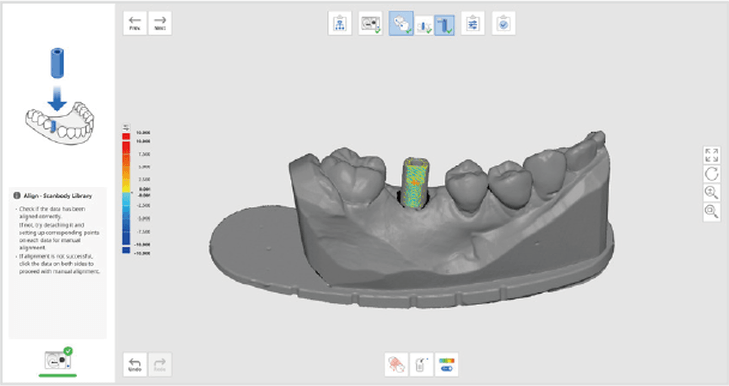 S knihovnou „Medit Certified“ využívá funkce Implant Scanbody Alignment algoritmus, který zajišťuje vysokou přesnost polohy i přesnost každého opětovného zarovnání. Funkce „Advanced Scanbody Alignment“ je obzvláště užitečná pro vysoce sofistikované protézy, jako jsou případy skenování pro třemny na implantáty.