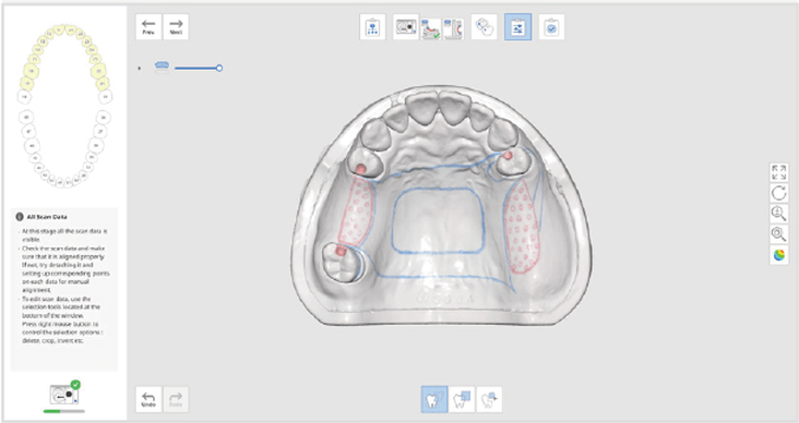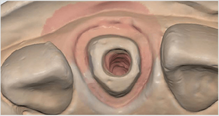Částečné náhrady vyžadují interproximální podsekřivinu jako základ pro retenci. Použijte „interproximální skenování“ ve strategii „ortodontického“ skenování pro skenování na částečné náhrady.
