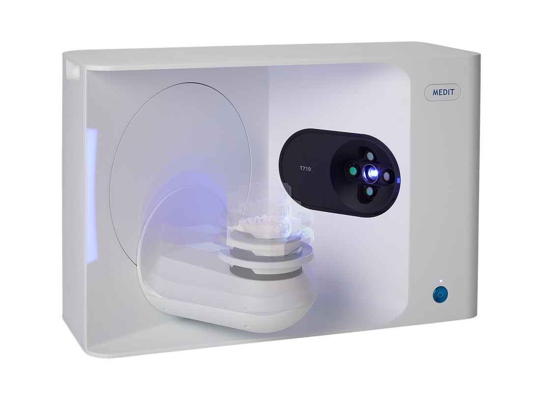 Medit T710 se svými novými čtyřmi HD kamerami s rozlišením 5,0 MP a skenovací technologií Blue Light zajišťuje, že vaše sádrové modely a otiskovací lžíce budou naskenovány zcela přesně a bez jakýchkoliv kompromisů.