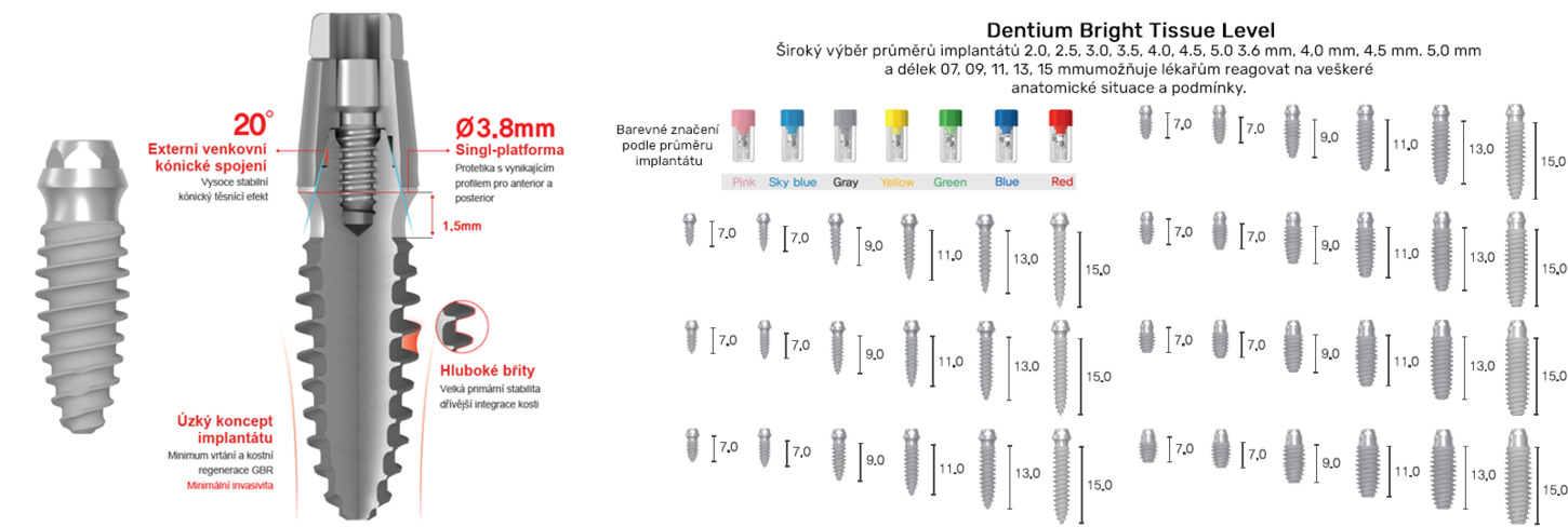 Systém Bright Tissue level nabízí velmi široký výběr 30 druhů průměrů a délek pro jakékoliv klinické situace