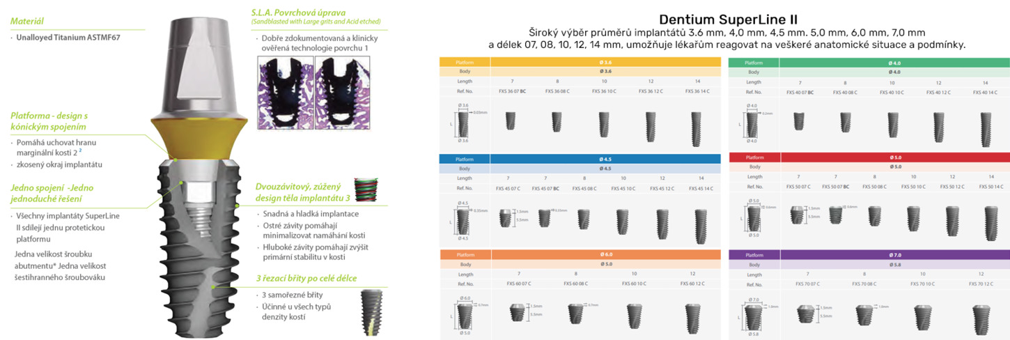 Osvědčený design implantátu SuperLine II zaručuje snadné a rychlé zavádění a vynikající primární stabilitu i při různé kvalitě denzity kosti.