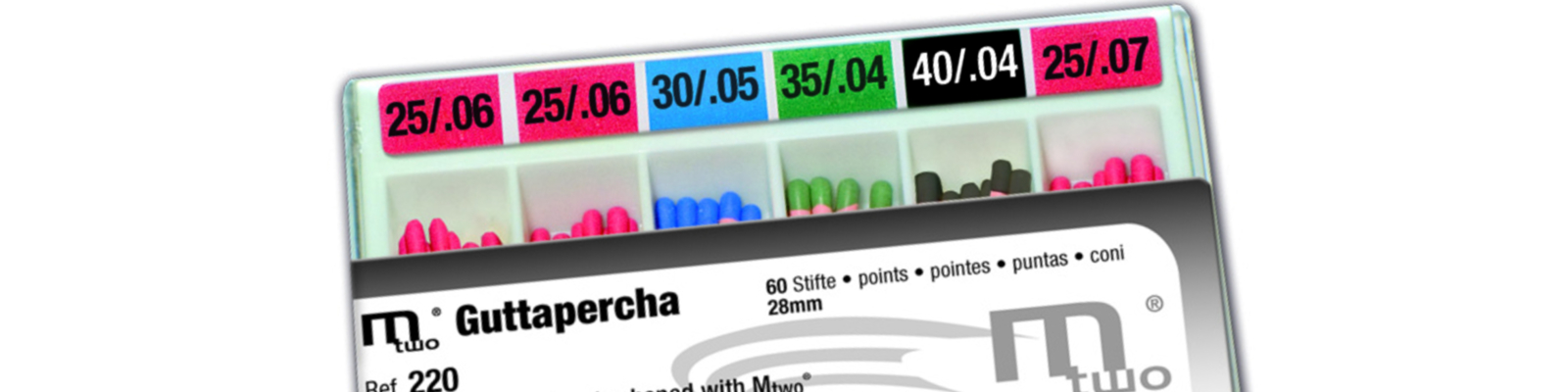 Díky přesným a kvalitním originálním gutaperčovým čepům vyrobených speciálně pro rotační NiTi systém VDW MTWO dosáhnete dokonalého homogenního zaplnění kořenového kanálku a minimalizujete riziko opětovné kontaminace. V sortimentu také najdete sterilní papírové čepy VDW MTWO.