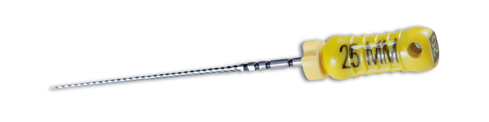 Ruční ocelové nástroje K-File výrobců MICROMEGA, VDW, a DIADENT slouží ke zprůchodnění a rozšíření kořenového kanálku. Neaktivní hrot vede nástroj bezpečně celou délkou kanálku. Speciální slitina oceli pro vysokou odolnost proti lomu a vysokou flexibilitu.
