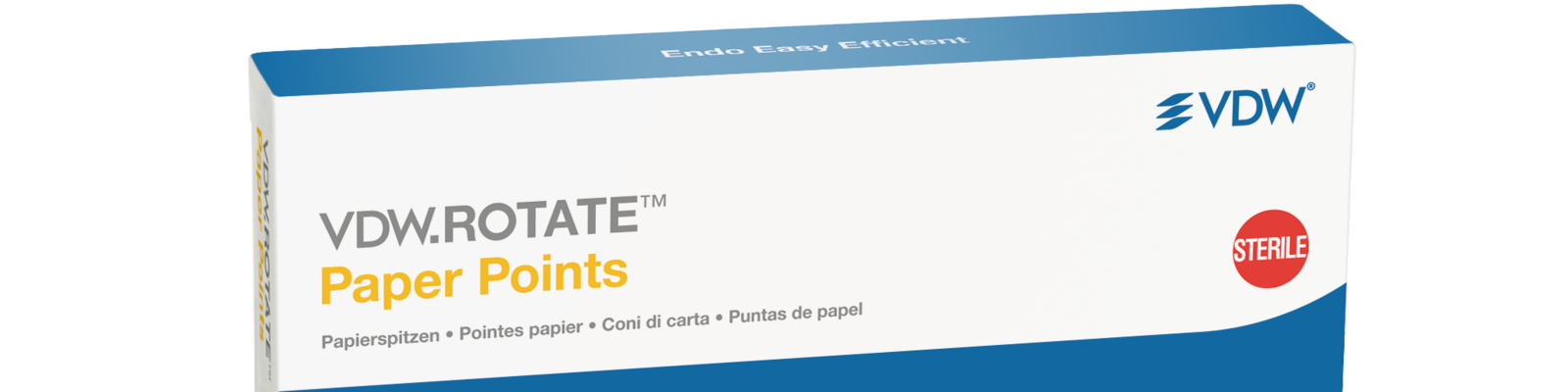 Dokonalé vysušení kořenového kanálku s vysoce savými sterilními papírovými čepy k rotačnímu NiTi systému VDW ROTATE. V sortimentu také najdete gutaperčové čepy VDW ROTATE.