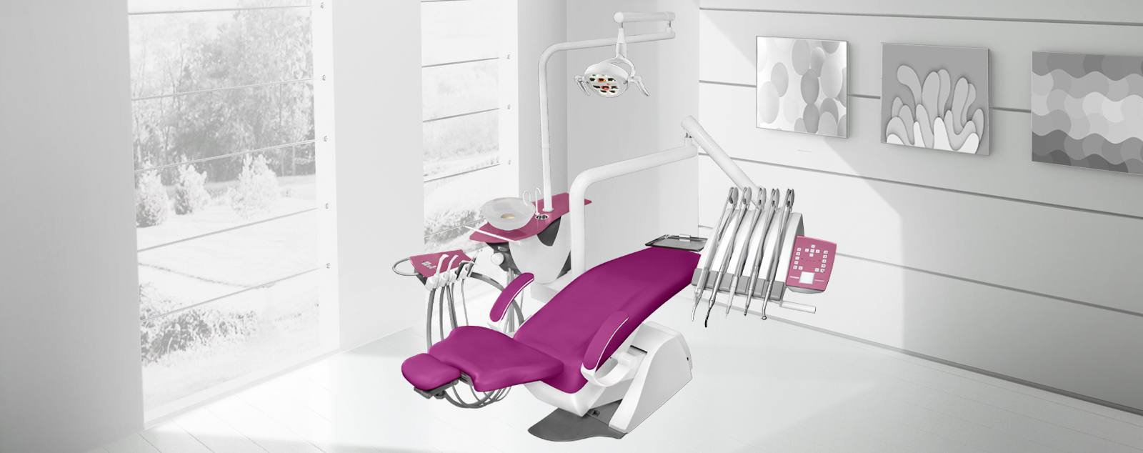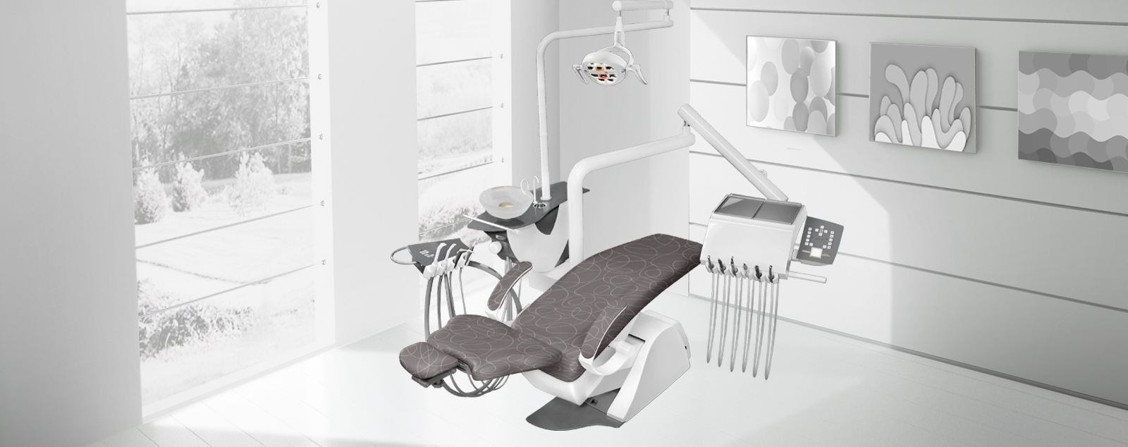 Profesionální, estetický a designový model s nejlepšími technologiemi, které zajišťují mnohaletou vysokou bezproblémovou funkčnost celé soupravy. Vysoký standard zpracování - Made in Germany, použití pouze těch nejkvalitnějších materiálů, zajišťuje vynikající funkčnost a spolehlivost. To vše je záruka pro trvalou spokojenost při každodenním používání. Samozřejmostí je příjemná manipulace spojená s estetikou, moderním designem a pohodlím pro pacienta.