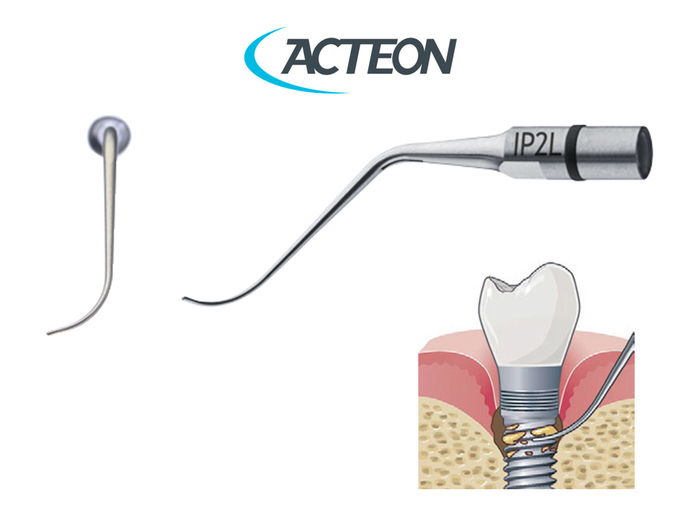 Čistá titanová vložka stejného tvaru jako P2L pro debridement středně velkých implantátů. Zakřivení vložky umožňuje dobře obejít implantát, aby došlo k úplné dekontaminaci.