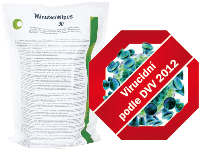 • Virucidní účinek podle DVV 2012 vč. všech obalených virů, jako HBV, HCV, HIV, herpes simplex, chřipka (vč. H1N1, H5N1), BVDV, vakcinie, koronaviry (např. MERS-COV) - 30 sekund