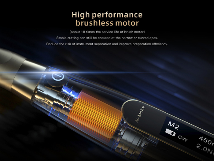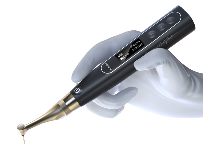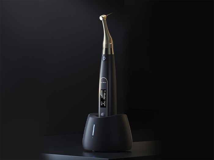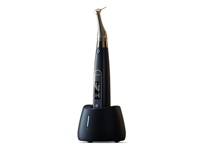 Designový endomotor v černé barvě s integrovaným apexlokátorem, reciprokačním a rotačním pohybem a mnoha programovými funkcemi. Kontaktujte náš tým pro předvedení.