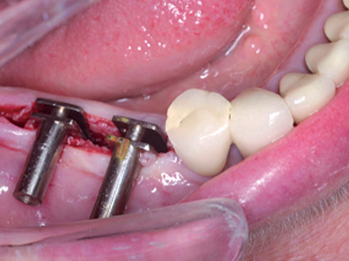 Meisinger Crest Control. Řízené rozšíření horizontálně resorbované kosti, příprava kosti pro všechny standardní implantační systémy. CREST CONTROL slouží pro rozšíření úzkého alveolu stejně jako systém SPLIT CONTROL, ale rozšiřování kosti je s ním v mnoha případech rychlejší. Do spáry v alveolu se zavádí horizontální spreader (distraktor) pro roztažení řezu.