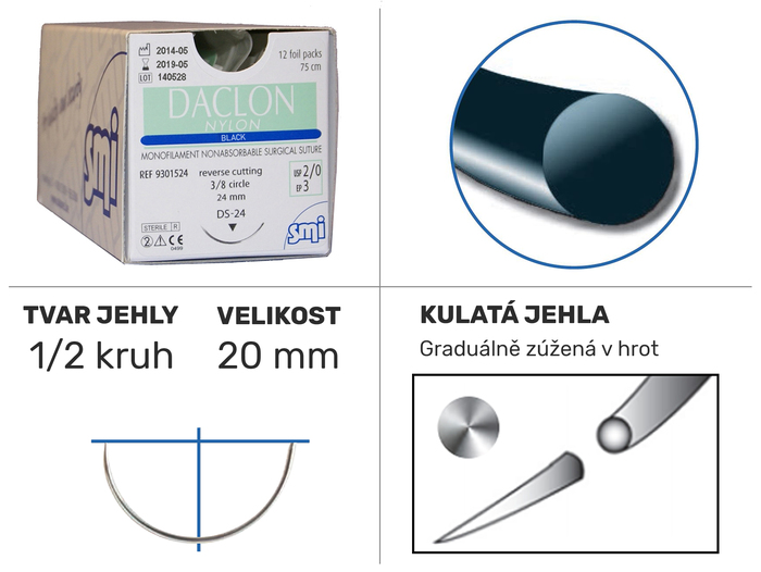 Daclon Nylon black 1/2 HR 20mm 75cm 5/0 9100120