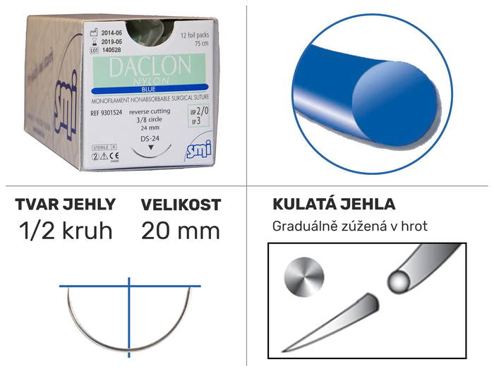 Daclon Nylon blue 1/2 HR 20mm 75cm 4/0 9150120