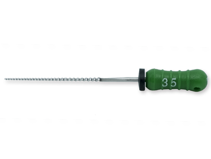 Ruční ocelový nástroj DiaDent FLEXI K-File slouží ke zprůchodnění a rozšíření zakřivených a složitých kořenových kanálků. Neaktivní hrot vede nástroj bezpečně celou délkou kanálku.