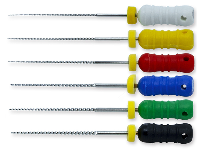 Ruční ocelový nástroj DiaDent K-File slouží ke zprůchodnění a rozšíření kořenového kanálku. Neaktivní hrot vede nástroj bezpečně celou délkou kanálku.