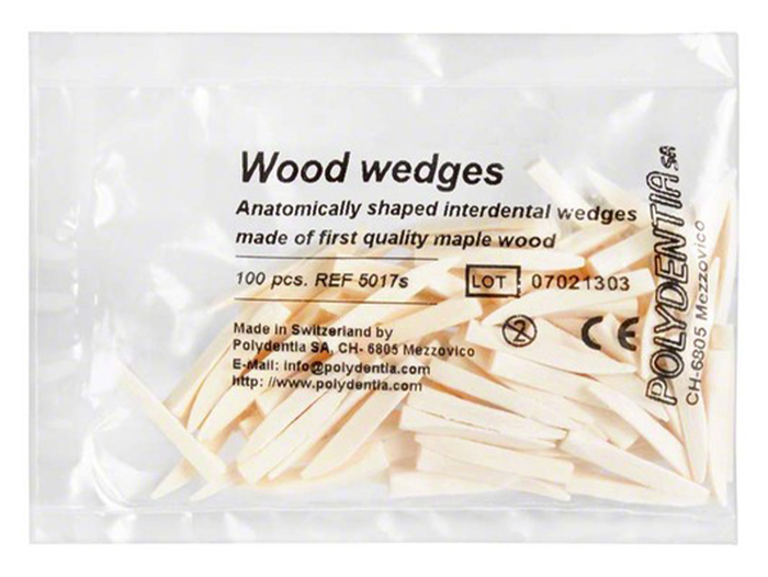Anatomicky tvarované interdentální klínky z vysoce kvalitního javorového dřeva. Obsah: 100ks klínků, bílé-17mm.