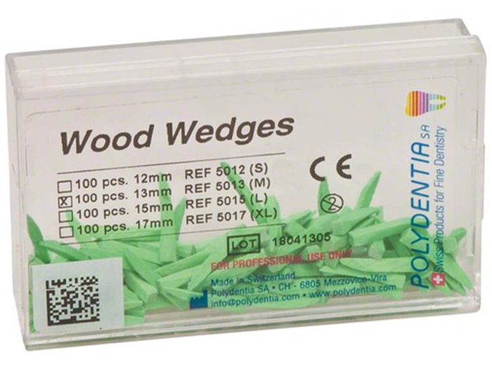 Anatomicky tvarované interdentální klínky z vysoce kvalitního javorového dřeva. Obsah: 100ks klínků, zelené-13mm.