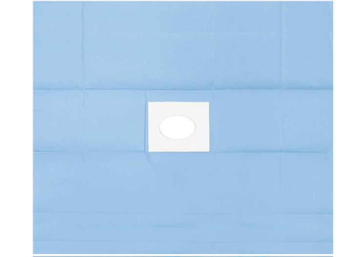 Adhezivní samolepící kruhový výřez uprostřed chirurgické operační krycí roušky, vytváří účinnou sterilní bariéru pro všechny typy chirurgických zákroků.