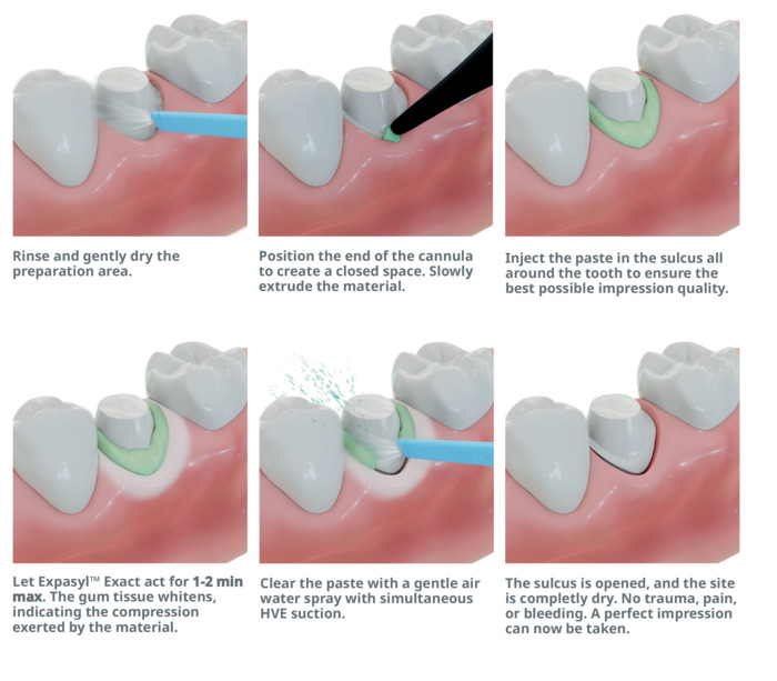 Expasyl retrakční hmota pro dočasnou retrakci gingivy. Zajišťuje vysoce přesné otisky. Zastavuje krvácení.