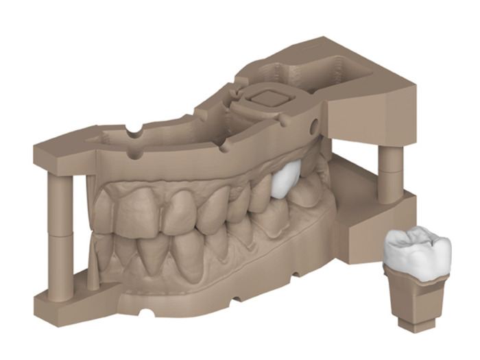 SprintRay Crown je keramikou plněný hybridní materiál pro 3D tisk jednotlivých korunek, inlejí, onlejí a fazet. Tento materiál se snadno dokončuje a leští tradičními metodami a nabízí vynikající estetiku, která se přizpůsobí stávajícím zubům.