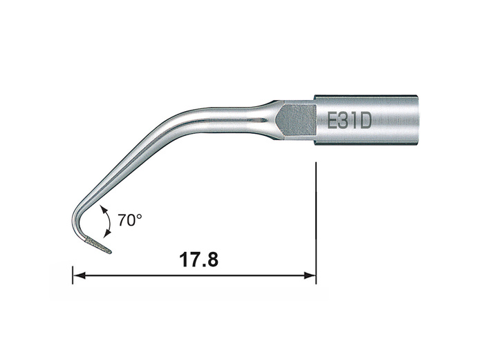 Špice s diamantovým povrchem umožňuje efektivní preparaci kavity. Podiamantovaný povrch. Pro zadní i přední zuby (zahnutá 70°)