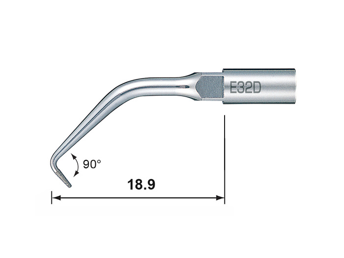 Špice s diamantovým povrchem umožňuje efektivní preparaci kavity. Podiamantovaný povrch. Pro přední zuby (zahnutá 90°).