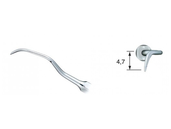 Vpravo zahnutá špice s ostrým okrajem. Určena pro ošetřování ve všech oblastech ústní dutiny, je velice účinná při odstraňování tvrdého zubního kamene.