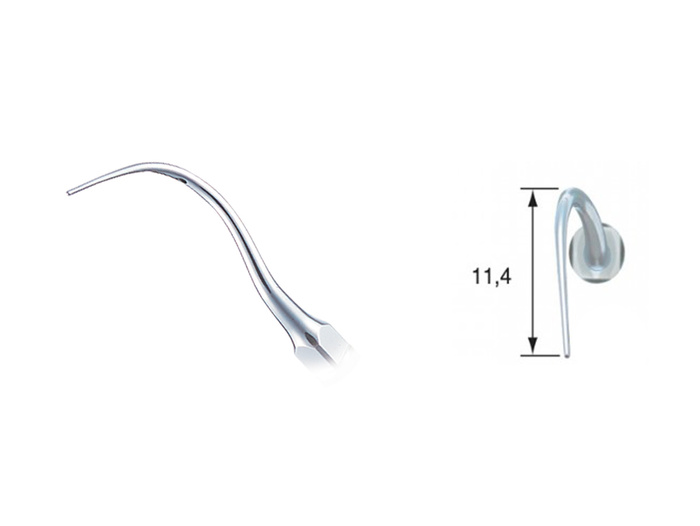 Jemně zahnutá špice pro snadný přístup do úzkých mezer mezi moláry. Vpravo zahnutá.