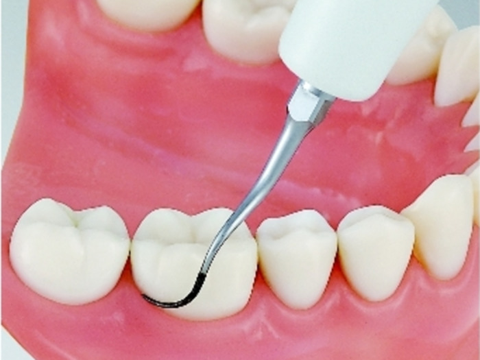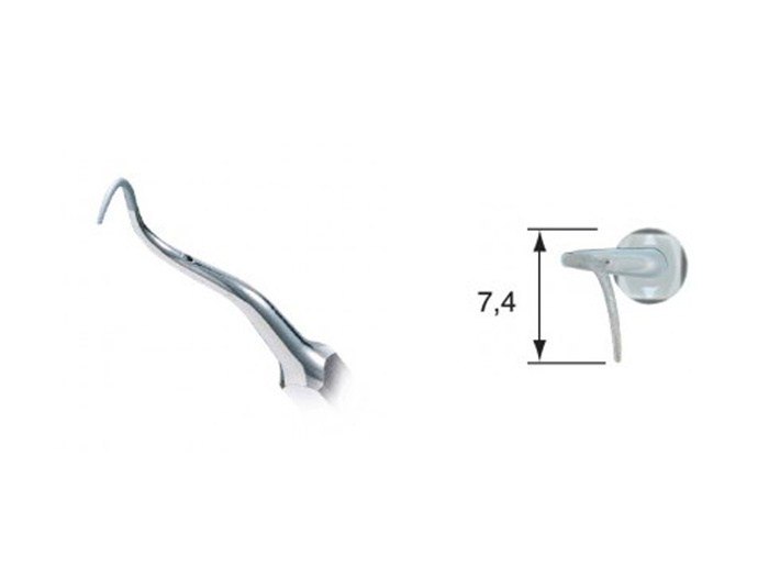Navržena pro ošetření mesiálních a distálních stran molárů a rozvětvení. Podiamantována. Vpravo zahnutá.