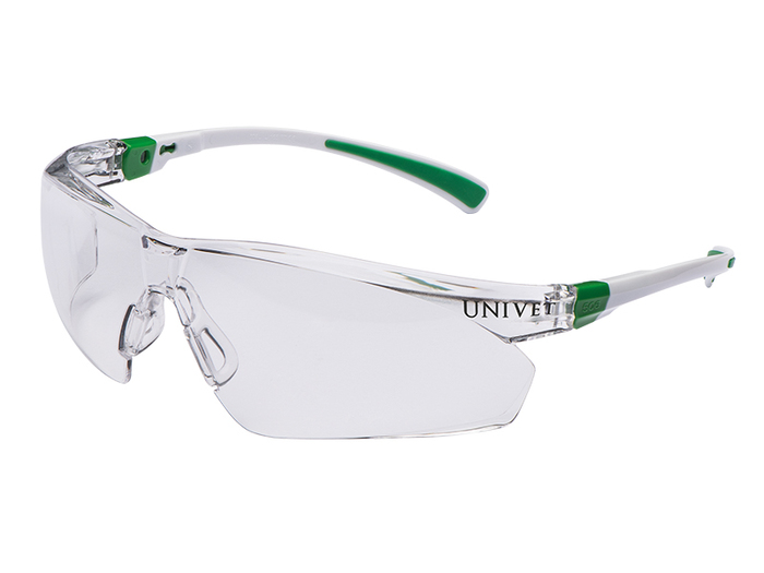 Ochranné brýle zaručující maximální ochranu a viditelnost. S nastavitelnými délkově a sklonem nožiček a měkkým, protiskluzovým nosním můstkem. Tím brýle zaručují výjimečné pohodlí. Vysoce odolné čočky s úpravou proti zamlžování a poškrábání. Průhledný a zelený rám. Hmotnost 25 g.