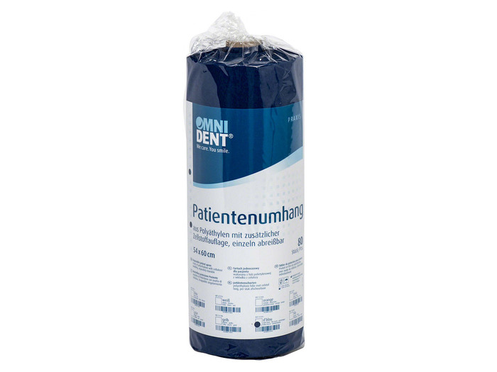 Jednorázové zástěry pro pacienta, kombinace tenké PE-folie a velmi savé celulózy. S vybráním na krk a páskami pro uchycení. Rozměry 54 x 60 cm. Role 80 ks.