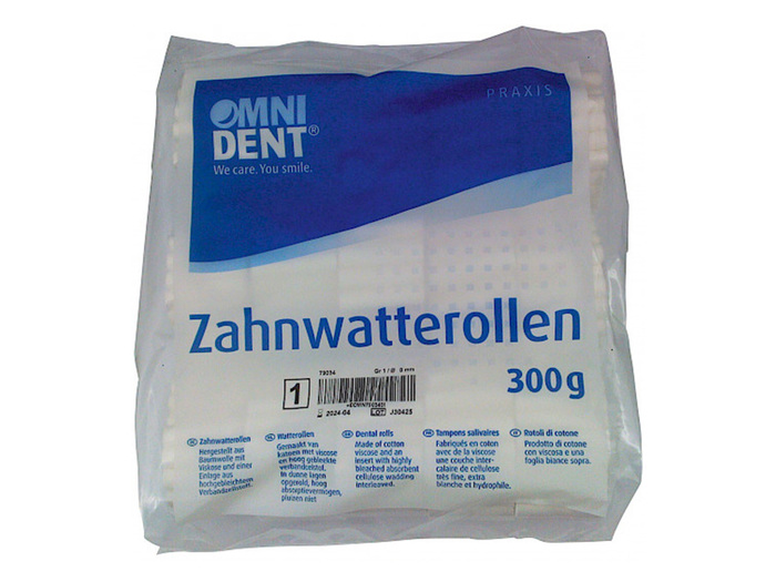 Jednorázové dentální bavlněné role vyrobené z čisté vaty a vysoce bělené obvazové dřeně. Srolované v tenkých vrstvách, vysoce savé a nezanechávající vlákna.