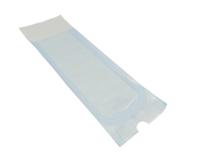 Samolepicí sterilizační sáčky vyrobené z bílého lékařského papíru o gramáži 60 g / m2 spojené se světle modrou polyesterovou / polypropylenovou vrstvou. Třístranné sváry s nepropustnými a rovnoměrnými kanálky pro nejvyšší ochranu před kontaminací. Lepící pásek ze syntetického kaučuku. Měnící se chemické barevné indikátory ověřují sterilizační proces párou nebo EtO (ethylenoxid). Bez uvolnění papírových vláken nebo trhání fólie v okamžiku otevření obalu.