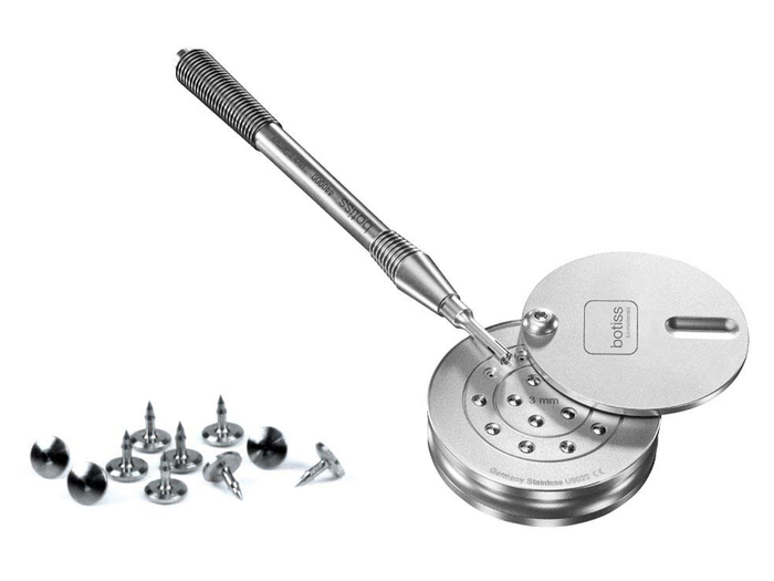 Balení obsahuje: 1× aplikátor, 1× dávkovací stojánek s místem pro 15 titanových pinů, obsah setu 10ks titanových 3mm pinů