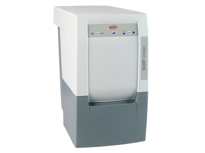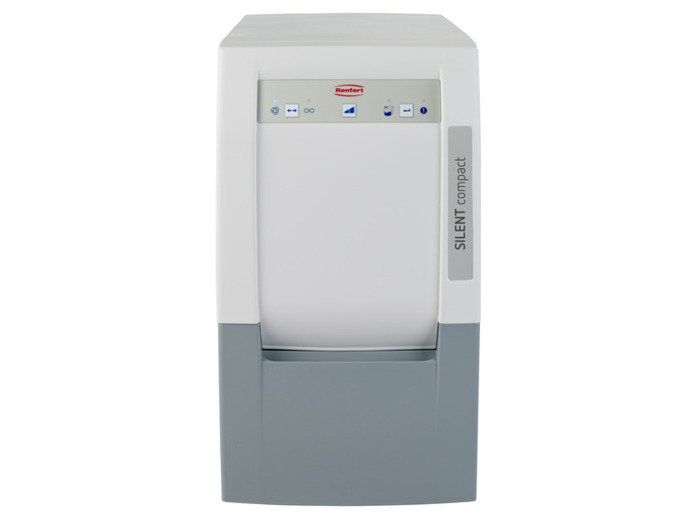 Silent compact je odsávací zařízení pro jedno pracovní místo nebo jeden přístroj. Odsávací zařízení je s bezsáčkovým systémem. Odsátý prach je odváděn do plastové nádoby. Přístroj se ovládá prostřednictvím inteligentního automatického ovládání. Díky plně zapouzdřenému motoru mají přístroje sníženou hlučnost. Technické údaje: Rozměry (Š × H × V) 24,5 × 50 × 44 cm, Hmotnost 13,2 kg, Sací výkon max. 42 l/s, Hlučnost max 56,9 dB, Příkon 480 W.