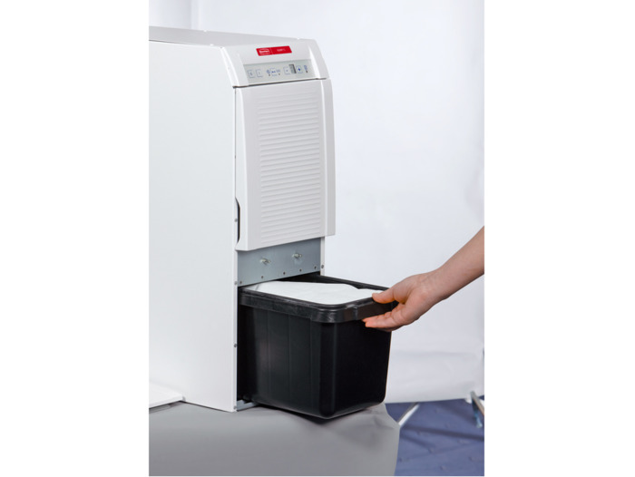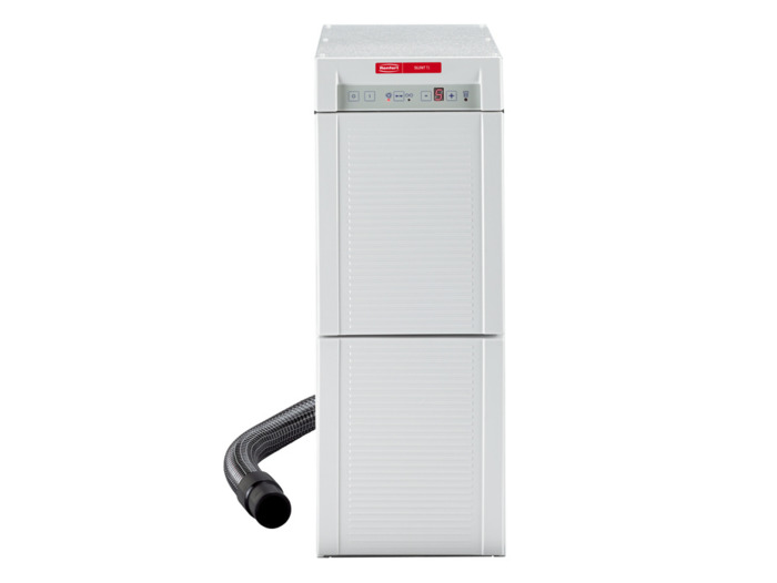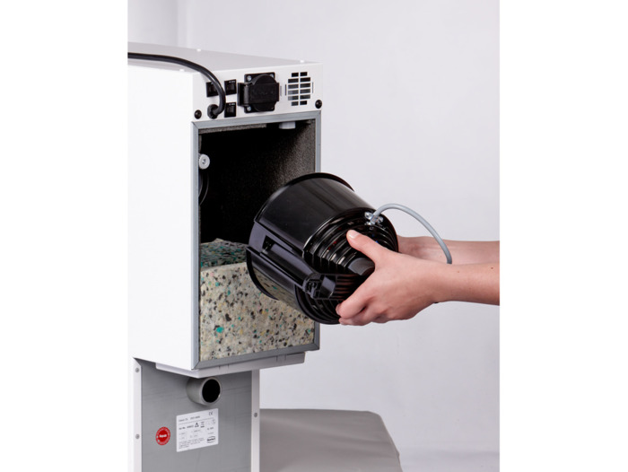 Odsávací zařízení Silent TS pro pracovní laboratorní stoly a přístroje. Silent TS je určený pro připojení jednoho přístroje s možností automatického spouštění. Bezuhlíkový motor s trojnásobnou životností v porovnání s motorem uhlíkovým, má extrémně tichý chod i při nastavení maximální sací síly. Filtrační dvoustupňový systém, při výměně utěsnitelný. Automatika spouštění umožňuje připojení všech typů zařízení produkujících prach. K odsávání Silent TS lze pomocí rozdvojky najednou připojit dva přístroje. Technické údaje: Sací výkon max. 55 l/sec, Kapacita prachového sáčku 7,5 l, Hlučnost max 56,3 dB, Rozměry (Š × H × V) 22,4 × 56,4 × 59,1 cm, Hmotnost 26 kg, Příkon 1 400 W.