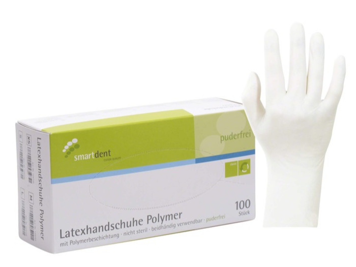 U vyšetřovacích rukavic smartdent pro polymerní latex se syntetický vnitřní povlak nenanáší volně, ale je přímo integrován do latexového materiálu díky speciálně vyvinutému procesu. To zaručuje rychlé a snadné nasazení rukavice a vyznačuje se její přívětivostí k pokožce. Povrch je plně texturovaný, což zaručuje celoplošný úchop. Ideální pro použití v zubní ordinaci.