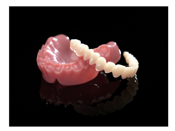 Výsledkem je dentální base materiál, který kombinuje pevnost, dlouhodobou trvanlivost a dobrou estetiku pro snímatelné protézy.
