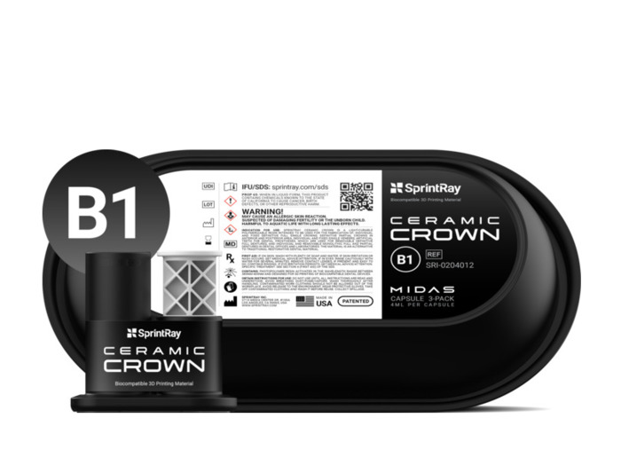 Ceramic Crown Capsules umožňují tisk definitivních estetických prací přímo v ordinaci během několika minut. Materiál s vysokým obsahem keramických plniv nabízí pevnost, přirozenou translucenci a je radiopákní.