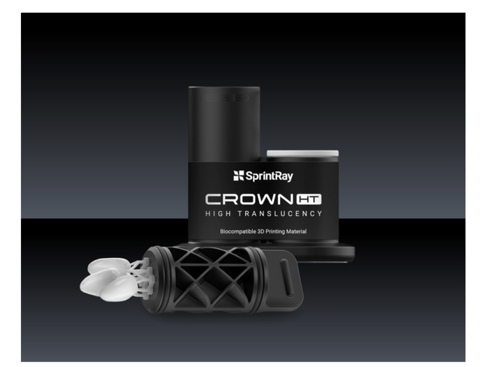 Crown HT, vysoce průsvitná pryskyřice od společnosti SprintRay, s více než 60 % keramického plniva pro realistickou difuzi světla, která replikuje přirozené zuby. Díky tomu je tento materiál ideální pro výrobu definitivních výplní, jako jsou korunky pro přední zuby, a minimálně invazivních výplní, jako jsou inleje, onleje a fazety, které vyžadují vysokou estetiku.