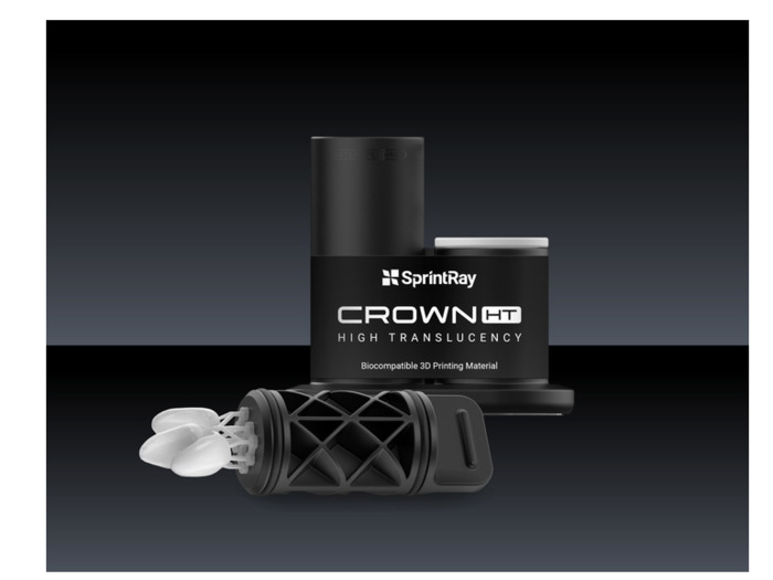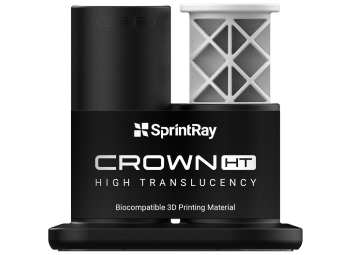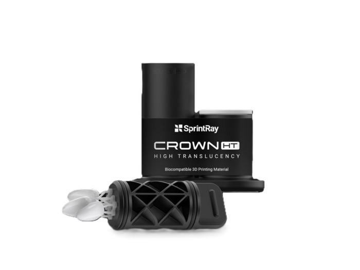 Crown HT, vysoce průsvitná pryskyřice od společnosti SprintRay, s více než 60 % keramického plniva pro realistickou difuzi světla, která replikuje přirozené zuby. Díky tomu je tento materiál ideální pro výrobu definitivních výplní, jako jsou korunky pro přední zuby, a minimálně invazivních výplní, jako jsou inleje, onleje a fazety, které vyžadují vysokou estetiku.