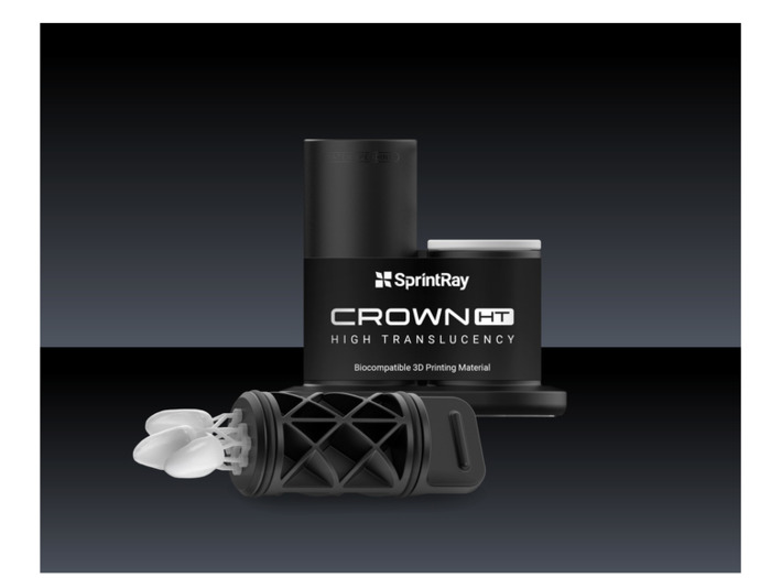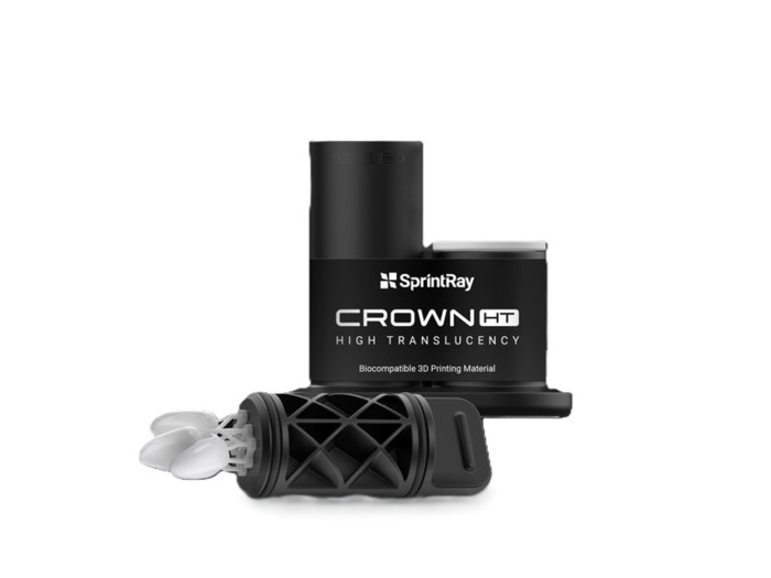 Crown HT, vysoce průsvitná pryskyřice od společnosti SprintRay, s více než 60 % keramického plniva pro realistickou difuzi světla, která replikuje přirozené zuby. Díky tomu je tento materiál ideální pro výrobu definitivních výplní, jako jsou korunky pro přední zuby, a minimálně invazivních výplní, jako jsou inleje, onleje a fazety, které vyžadují vysokou estetiku.