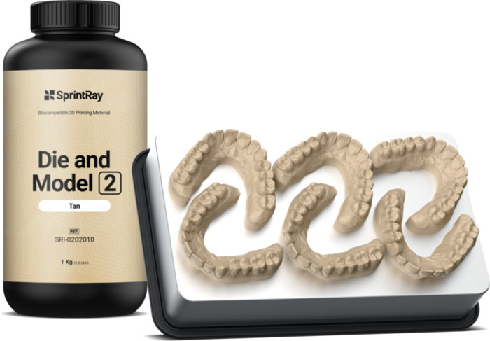 SprintRay Die & Model 2 Tan představuje velký krok vpřed v dentálních modelovacích materiálech pro 3D tisk. Naše opálená barva napodobuje klasický sádrový model a bez usazování pigmentu, což znamená, že můžete strávit více času tiskem a méně času mícháním. Zlepšená přilnavost ke stavební desce je spojena se zvýšením modulu pružnosti a pevnosti, což poskytuje vyšší míru úspěšnosti a sníženou možnost zlomení.