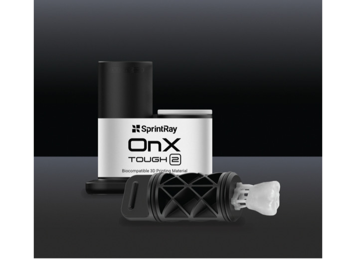 OnX Tough 2 od SprintRay je vysoce pevná kapslová pryskyřice určená pro výrobu implantátových suprastruktur a náročných protetických prací, zejména full-arch rekonstrukcí.