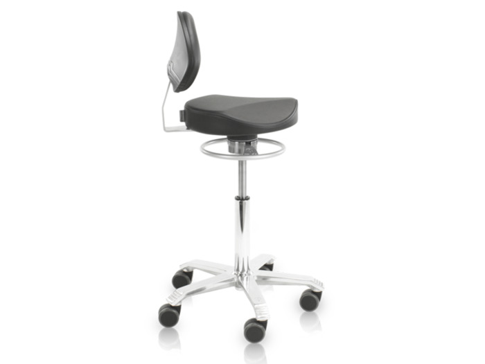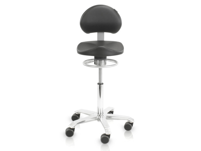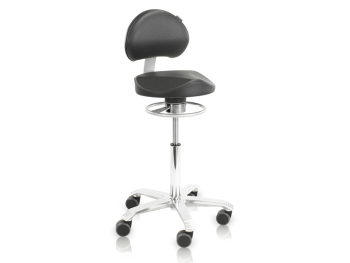 Score Medical 6301 Balance je stolička se sedlem Ergo Shape ø 35 cm s funkční bederní opěrkou, kterou lze snadno nastavit na výšku a úhel a s výřezem pro stehna, aby se zabránilo stagnaci krevního oběhu. Se židličkou Score Medical Balance budete vždy spokojeni. Lze ji využívat při práci v nemocnici, zubní ordinaci nebo na jiných zdravotnických pracovištích.