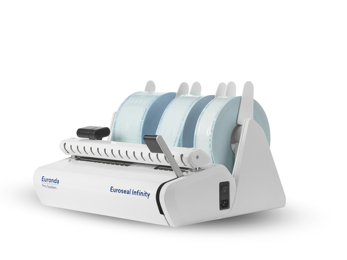 Svářečka Euroseal® Infinity je přirozeným nástupcem Euroseal® 2001 Plus, je stabilní, spolehlivá a snadno použitelná. Nový design je poutavý a funkční. Nový vestavěný nůž a těsnící páka umístěná na přední straně nejen zlepšují ergonomii a bezpečnost, ale také usnadňují proces balení a těsnění. Díky této konstrukci je stroj kompaktní, takže jej lze pohodlně umístit na desku stolu nebo namontovat na zeď ve svislé poloze. Plně v souladu s normami UNI 868-5 a EN 11607-2.
